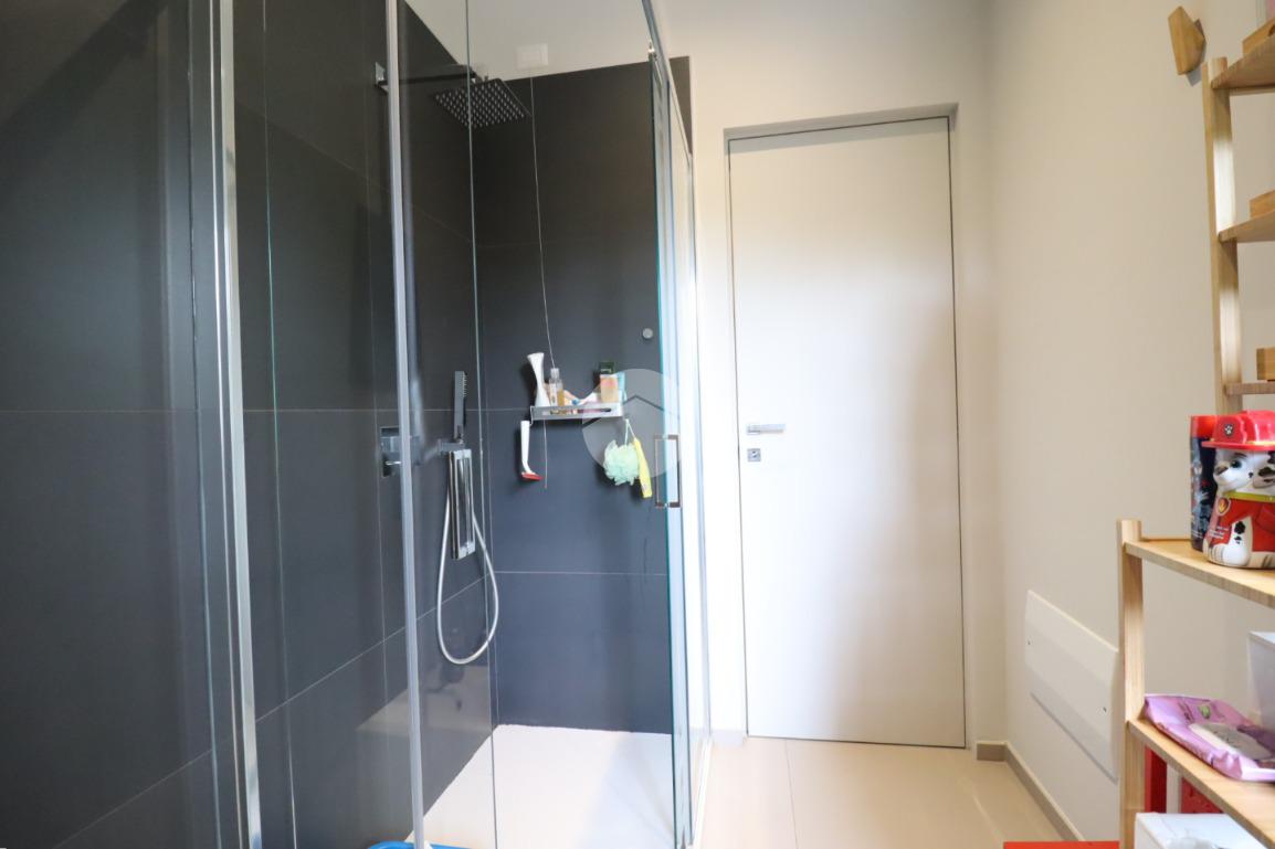 La casa è dotata di numerosi accorgimenti tecnici e impiantistici di ultima generazione: infissi taglio termico con tapparelle elettriche, cappotto interno, ventilazione meccanica controllata con deumidificazione, raffrescamento a pavimento e fotovoltaico privato da 3 kW.