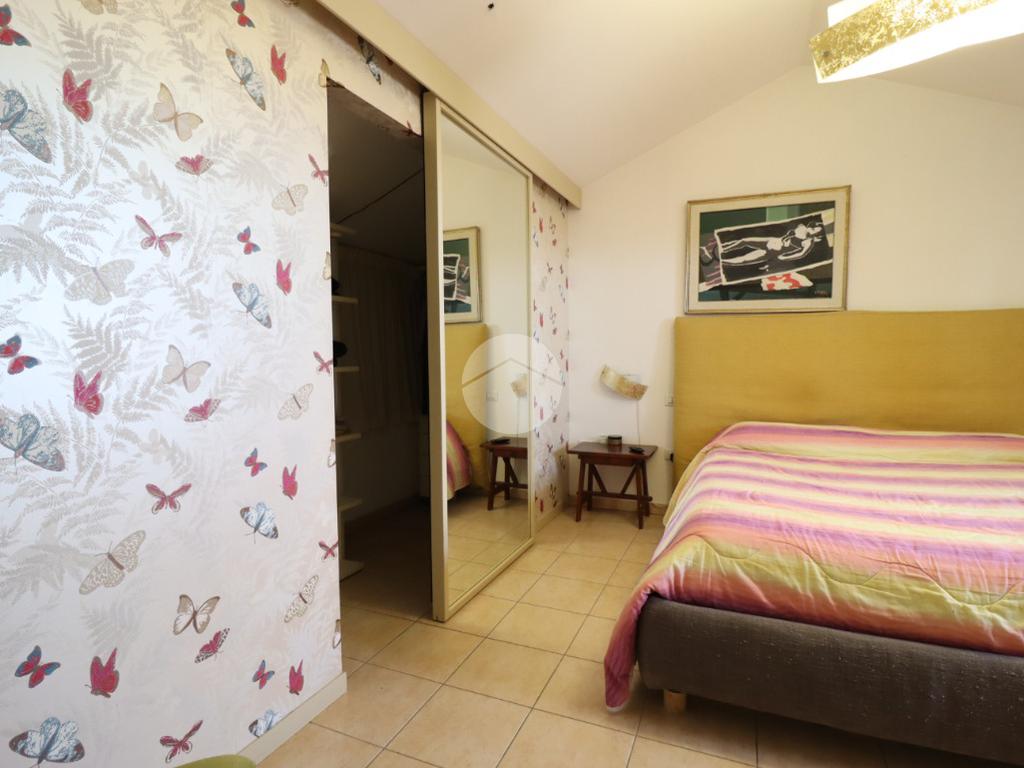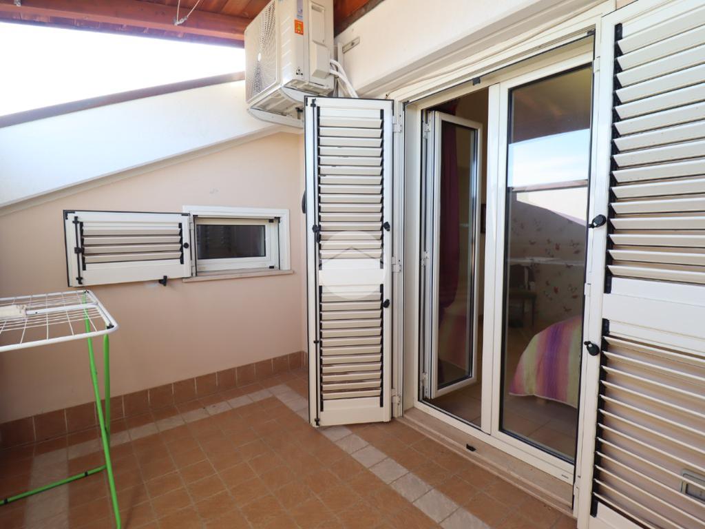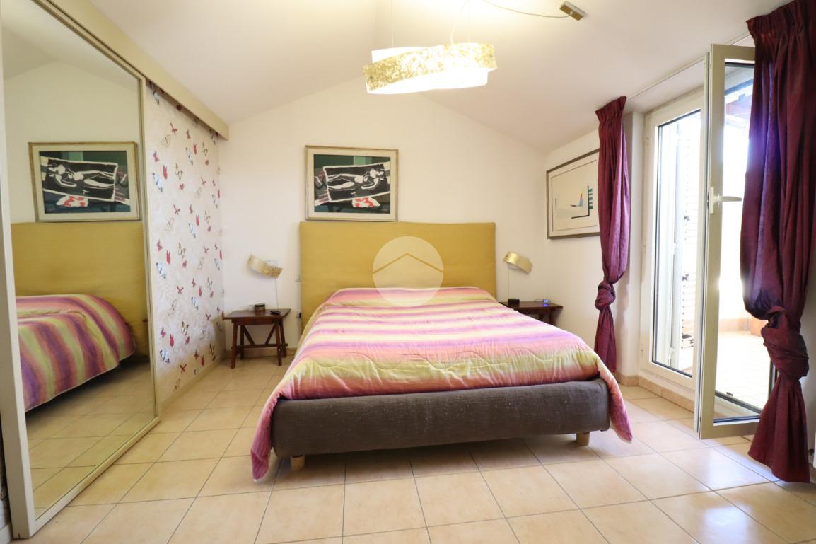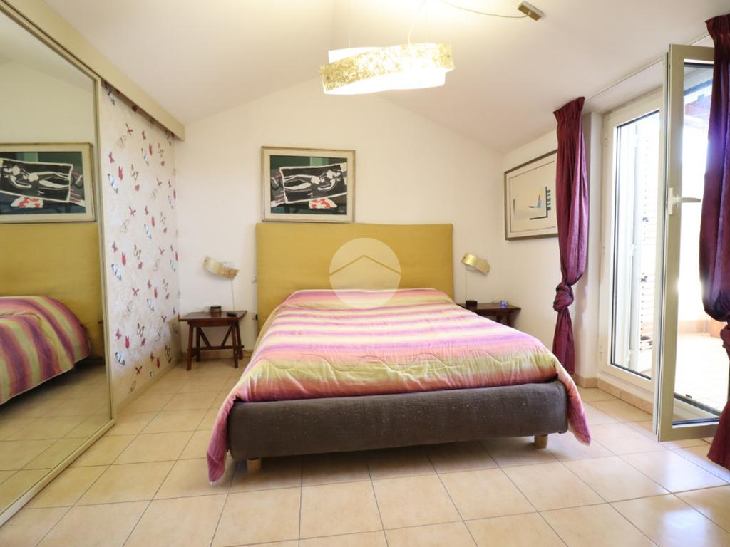 Una scala a chiocciola conduce alla zona notte, dove troviamo tre camere da letto: una matrimoniale con balcone vista mare e cabina armadio, una camera doppia e una singola, oltre a uno studio e a un ulteriore balcone abitabile.