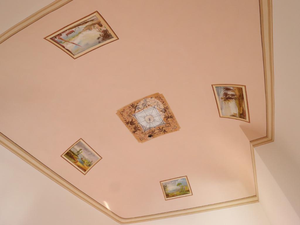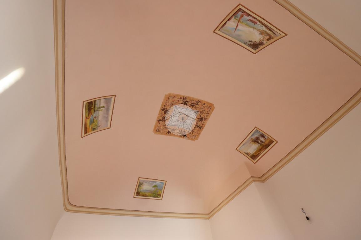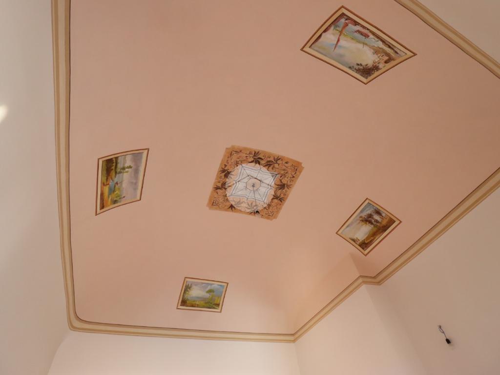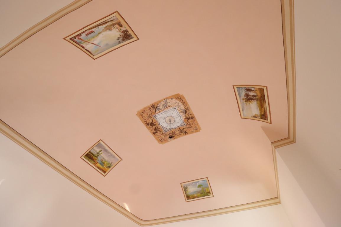 Varcata la soglia, la zona giorno si apre in tutta la sua solennità: un ampio salone impreziosito da un affresco, che dialoga con la luce naturale e con pavimenti in marmo.