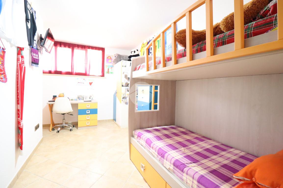 Al primo piano troviamo una camera padronale di ampia metratura, con bagno privato e accesso all'esclusivo terrazzo con vista mare e panoramica, una seconda camera matrimoniale spaziosa e un bagno aggiuntivo.