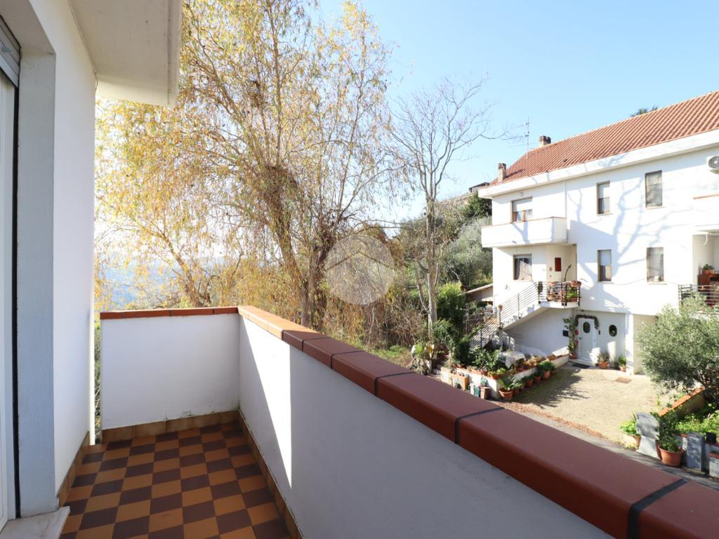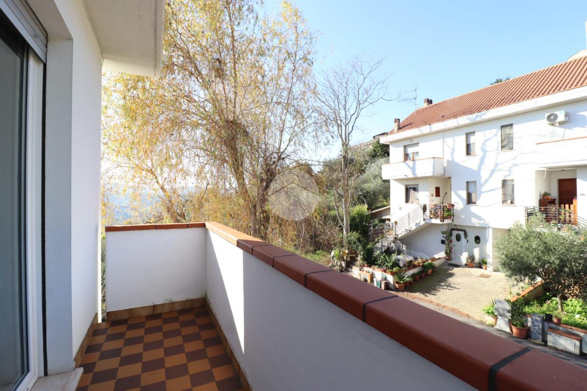L’ingresso si apre sulla zona giorno al piano terra, dove l’ampio salone con camino a legna e stufa a pellet accoglie luce e comfort, con accesso diretto al balcone. La cucina è separata e abitabile, perfetta per la vita quotidiana famigliare. Completa il piano un pratico bagno finestrato con doccia.